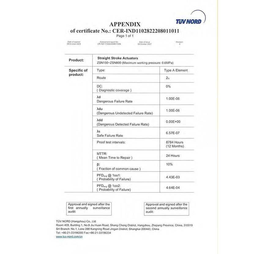 直行程執行器 SIL證書 2