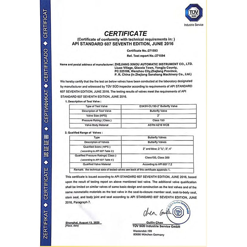 蝶閥防火證書 3